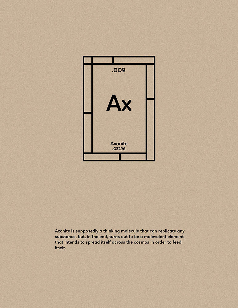Elementary is a set of 31 prints of fictional elements created for David Horvitz’s project Drugstore Beetle (Sitodrepa Paniceum). This project was fueled by my life-long engagement with science fiction and my fascination with speculative realities. All of these elements originally appeared in comics, novels, movies and other cultural artifacts.
